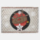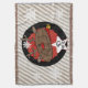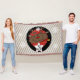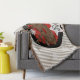 Hermosos Navidades de vacaciones lanzan manta con un lindo reno de nariz roja sobre un fondo gris con rayas diagonales blancas, una franja de negro sólido con unos cuantos copos de nieve blancos y un centro rojo con puntos de polka blancos.