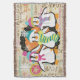 La topografía y la manta de lanzamiento de pingüinos en vacaciones incluyen tres pingüinos adorables en gorras de invierno y bufandas sobre un fondo de blanco con texto topográfico, estrellas y copos de nieve, una franja de puntos blancos sobre negro y un centro naranja con puntos de polka blanco.