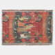 MANTA TEJIDA UNICORN Y DAMA JUGANDO ÓRGANO CON ANIMALES