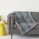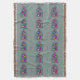 Dibujo gráfico, de una ventana azul-gris, gótica, con colores en; azul, púrpura, rojo, fusquia, gris y dorado, vidrieras, contra un fondo de color gris oscuro.