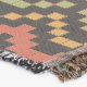 Una manta de moda, con un patrón tradicional egipcio de tejido de cesta en rojo rusto, verde, amarillo dorado y negro. Parte de la colección "egipcia" de Posh y Painterly.