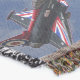 El equipo de la exposición de tifones de la RAF con su jet recién decorado. El tifón de Union Jack, Blackjack de firma de llamadas. Fotografía de la zona de peligro en Totterdown RIAT 2022. Los pilotos tienen su base principal en RAF Coningsby. Hay un borde azul, blanco y rojo alrededor del avión en el color de Union Jack. No olvides añadir tu propio texto.