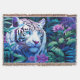 tigre blanco de ojos azules en hojas tropicales y flores moradas AI Art de minx267