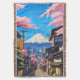 Una pequeña calle de Tokio con vistas al monte Fuji a lo lejos. El estilo de IA Anime genera arte.