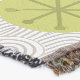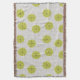 Esta manta de tiro tiene un diseño moderno de mediados de siglo de arcos tostados que se repiten sobre el blanco como fondo con círculos repitiendo de oro verde con estallidos de oro verde más oscuro dentro de ellos.
