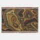 Tótem: Arte primitivo abstracto en tonos terrosos de naranja, marrón, verde y beige.