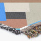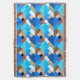 Diseño moderno de mediados del siglo XX de triángulos estratificados en tonos azul cobalto, turquesa, marrón cacao y tostada, acentuados con blanco