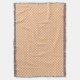 "Two images of an orange and white checkered blanket with fringe edges, shown horizontally and vertically. The design conveys warmth and coziness."