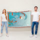 Una pintura de un barco de vela encaramada peligrosamente en el escudo de una ola mientras los tentáculos monstruosos del mar amenazantes se extienden desde las profundidades azules del océano. Oh.