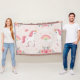 Girly Unicorn All Seasons Throw Blanket presenta un bonito y bonito paisaje de ensueño de Unicornio con flores, arcos y nubes en tonos pastel pálidos. Personalice el nombre (colocado en la nube) o elimine, si lo prefiere.