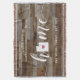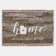 Muestra orgullo por tu estado natal con esta linda y rústica manta de lanzamiento de tablones de madera falsa que presenta "hogar" en letras de caligrafía blanca con un mapa en silueta del estado de Utah reemplazando la letra "O". Una ilustración de corazón rosa dentro del mapa del estado completa el diseño; puedes cambiar la posición del corazón a tu ciudad natal abriendo la herramienta de diseño y arrastrando la forma del corazón a tu lugar favorito. Personaliza con tu ciudad natal, nombre de familia y año de establecimiento para crear un regalo de inauguración perfecto y memorable o un complemento para tu nuevo hogar.