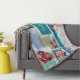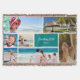 Recuerde sus vacaciones familiares con esta hermosa y moderna manta con espacio para siete de sus fotos favoritas de viaje. En la parte inferior hay una caja verde azulada para el texto de su personalizado, como el año de sus vacaciones, su apellido y/o su destino de viaje. Este personalizado arroja manta sea un tesoro para los años venideros.