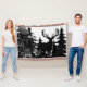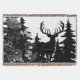 El ciervo emerge de los pinos y está rodeado de flores silvestres en un simple diseño de vida silvestre.
