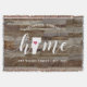 Muestra orgullo por tu estado natal con esta linda y rústica manta de lanzamiento de tablones de madera falsa que presenta la palabra "hogar" en letras de caligrafía blanca con un mapa en silueta del estado de Vermont sustituyendo la letra "O". Una ilustración de un corazón rosa dentro del mapa del estado completa el diseño; puedes cambiar la posición del corazón a tu ciudad natal abriendo la herramienta de diseño y arrastrando la forma del corazón a tu lugar favorito. Personaliza con tu ciudad natal, nombre de familia y año de establecimiento para crear un regalo de inauguración perfecto y memorable o un complemento para tu nuevo hogar.