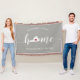 Muestra orgullo por tu estado natal con esta linda manta gris rústica que presenta "hogar" en letra de caligrafía blanca con un mapa en silueta del estado de Virginia reemplazando la letra "O". Una ilustración de un corazón rojo dentro del mapa del estado completa el diseño; puedes cambiar la posición del corazón a tu ciudad natal abriendo la herramienta de diseño y arrastrando la forma del corazón a tu lugar favorito. Personaliza con tu ciudad natal, nombre de familia y año de establecimiento para crear un regalo de inauguración perfecto y memorable o un añadido a tu nuevo hogar.