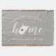 Muestra orgullo por tu estado natal con esta linda manta gris rústica que presenta "hogar" en letra de caligrafía blanca con un mapa en silueta del estado de Virginia Occidental que reemplaza la letra "O". Una ilustración de un corazón rojo dentro del mapa del estado completa el diseño; puedes cambiar la posición del corazón a tu ciudad natal abriendo la herramienta de diseño y arrastrando la forma del corazón a tu lugar favorito. Personaliza con tu ciudad natal, apellido y año de establecimiento para crear un regalo de inauguración perfecto y memorable o un complemento para tu nuevo hogar.