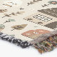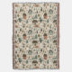 Cottage core throw blanket with a cute village of cottages and trees, mushrooms, flowers in green, brown, and earthy tones.