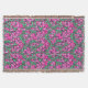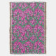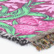 Arrojar en un William Morris, Art Nouveau, impresiones textiles de iris y hojas, realzadas digitalmente y coloreadas, en fucsia y rosa, verde pavo real y blanco, sobre un fondo de vino profundo