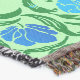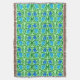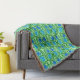 Arrojar una manta en un patrón textil de William Morris vintage de flores y hojas de pentela estilizadas - flores en un gradiente de azul ceruleño profundo a claro, con hojas verde esmeralda, sobre un fondo verde lima claro