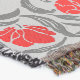 Arrojar una manta en un patrón textil vintage de William Morris de flores y hojas de pentela estilizadas - flores en un gradiente de color rojo oscuro a brillante, con hojas gris/gris grafito, sobre un fondo gris plateado claro