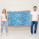 Arrojar una manta con un patrón vintage de William Morris de ramas estilizadas de sauce, en tonos cobálticos y azul ceruleño con añil oscuro, sobre un fondo blanco