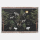 Lobo y lobo gris , luna , pinares, dibujo de arte digital nocturno. Para todos los amantes de la noche, almas silvestres un hermoso espíritu arte animal . Color de fondo personalizado. Color de fondo personalizado.