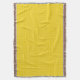 Yellow woven blanket displayed horizontally and vertically, with a subtle grid pattern and fringed edges. The tone is warm and bright, evoking coziness.