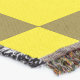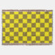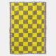 Un audaz patrón de tablero de ajedrez alternando entre los cuadrados verde azerí y amarillo ácido, creando un diseño visual vibrante y enérgico.