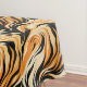 El mantel de algodón se muestra en un tono negro-naranja encantador con estampado de arte abstracto.