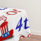 Tablero para celebrar la Independencia de Estados Unidos con 4 de julio en 3D azul y rojo texto y el gorra del Tío Sam. Manteles disponibles en varios tamaños.