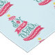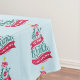 Un mantel con un ilustracion divertido y caprichoso. Diseño tipográfico en forma de árbol de Navidad con algunos adornos de navidad y una estrella en la parte superior. Adentro están las palabras: Alegría al mundo.