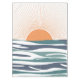 Resumen ilustracion de la salida del sol con sol naranja y decoración de olas de mar azul, blanco y turquesa