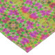 Una decoración vibrante muestra un caleidoscopio de colores, con tonos vivos, verdes y amarillos, dispuestos en un diseño simétrico. La composición crea un efecto hipnotizante con sus elementos intrincados y repetitivos.