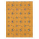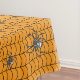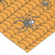 Un fondo naranja brillante crea una base perfectamente temática de Halloween para un patrón repetido de telaraña negra arrastrándose con arañas. Estas arañas, inspiradas en la falsa viuda, tienen un cráneo blanco brillante en sus abdomen y otras marcas blancas en su cuerpo y piernas.