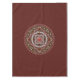 Esta mandala fue diseñada para el símbolo del zodiaco, Aries, que representa una piedra de jaspe roja en el centro rodeada de elementos que representan el signo, como el símbolo del signo, la constelación y el símbolo alquímico del Fuego, así como las viñas y tejas de filigree que la envuelven en una imagen sólida en tonos rojos, plateados y marrones.