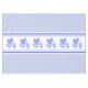Manteles de inspiración europea, de color azul claro, con rayas blancas en el centro, con un pájaro azul y motivos edelweiss. Adicional encantadora a cualquier mesa para cualquier ocasión.