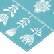 Tela de mesa inspirada en la inspiración escandinava. Azul con flores blancas.