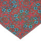 Los patrones geométricos intrincados crean un diseño simétrico con tonos rojos y azules vibrantes. Los motivos repetitivos dan una sensación de movimiento y complejidad.