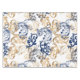 Elegant vintage vector pattern featuring flowing baroque-style floral scrolls in navy blue and gold on a clean white background, creating a classic, luxurious, and timeless ornamental design.