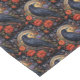 Un mantel con cuerdas negras. Un arco amarillo detrás. Rodeado de flores rojas y violetas. Vibra gótica de Guay.