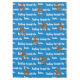 El caprichoso personaje de caricatura Super Snow, el bebé reno de ojos azules con manchas blancas y el aspecto de la nariz trinitosa azul roja está bailando a través del fondo azul. Diseño original de las obras de arte de renos © TamiraZDesigns.