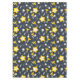 Flores y hojas retro en blanco, gris y amarillo ocre sobre un fondo azul de medianoche. Se puede cambiar el color de fondo.