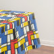 Una huella abstracta, geométrica y de colores vivos en cuadrados, rectángulos y líneas azules, amarillos, rojos y negros crea un mantel que te encantará. A imagen del estilo de Piet Mondrian, se trata de un estilo retro con una actualización moderna que gustará a todos.