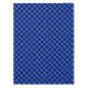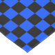 A blue and black checkerboard pattern fills the image, creating a uniform, alternating grid of squares, conveying a bold and geometric feel.