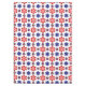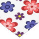 This tablecloth features a beautiful colorful floral pattern of blue, purple and red stylized daisies against a white background; perfect for adding a touch of retro cuteness to your dining room or kitchen.