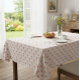 Trae calor y patrimonio a tu mesa con este mantel de bonito diseño inspirado en el bordado tradicional ucraniano. El encantador patrón floral de puntos cruzados, con pétalos rosas suaves y hojas doradas, evoca la belleza intemporal de las agujas hechas a mano. Perfecto para reuniones festivas, comidas del día o como acento cultural significativo, este mantel combina encanto rústico con elegante sencillez. Un toque agradable para los amantes del arte folclórico eslavo y del estilo vintage moderno.