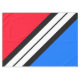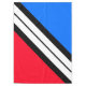 Este diseño deportivo patriótico presenta rayas de carreras en diagonal en blanco y negro contra fondo azul y rojo brillante.