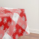 Pestaña en un patrón grande, profundo, rojo y blanco de manteca de búfalo, con copos de nieve blancos y flúor