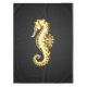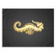 Artístico, poligonal, caballito de mar de chispa, Relieve metalizado dorado sobre fondo negro.