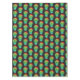 Un mantel con un patrón de repetición. Un ilustracion adorable de un cactus redondo de plomo, con grandes ojos de kawaii, sonriendo y con sombrero rojo. Parado dentro de una maceta de flores. El fondo es una imagen de pizarra negra.